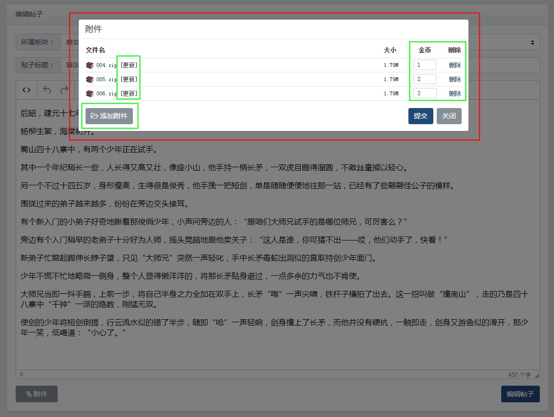 本插件支持发帖和编辑帖子时皆可上传附件和设置附件价格(包含回帖也可以设置附件价格)。
