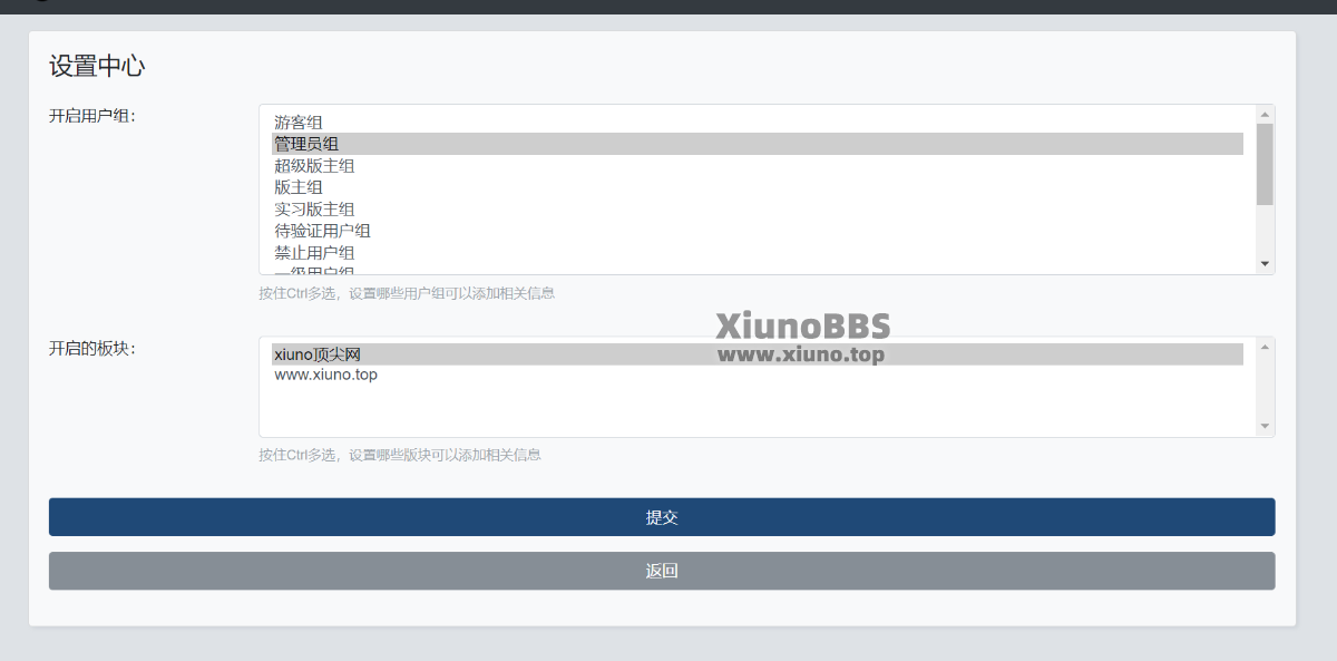 1,支持开启板块及用户组设置,自由选择权限,动态跟随板块选择显示及隐藏