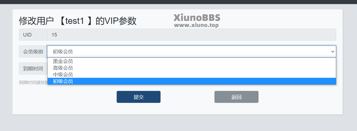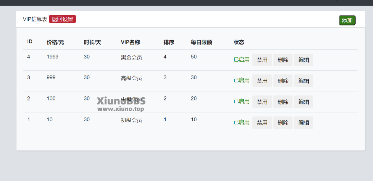 4,VIP用户管理功能,可自由设置用户VIP权限及到期时间